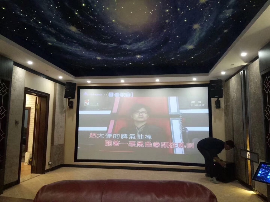 13.影音線材屬于弱電要和強電分開埋,相隔300MM,更不要交叉。投影機吊在天花板上,要是有吊頂的話就要事先把吊架安裝上,在安裝投影機附近做電源插板,在墻下方,方便的地方安裝電源控制開關。便于看完電影后散熱后,斷電。